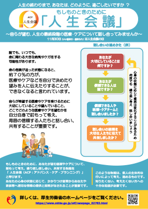 厚生労働省では、「人生会議」という愛称で普及を進めています。