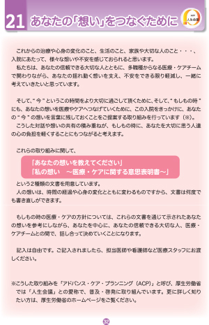 | 入院のご案内 32ページより | 「あなたの想いを教えてください」 |
