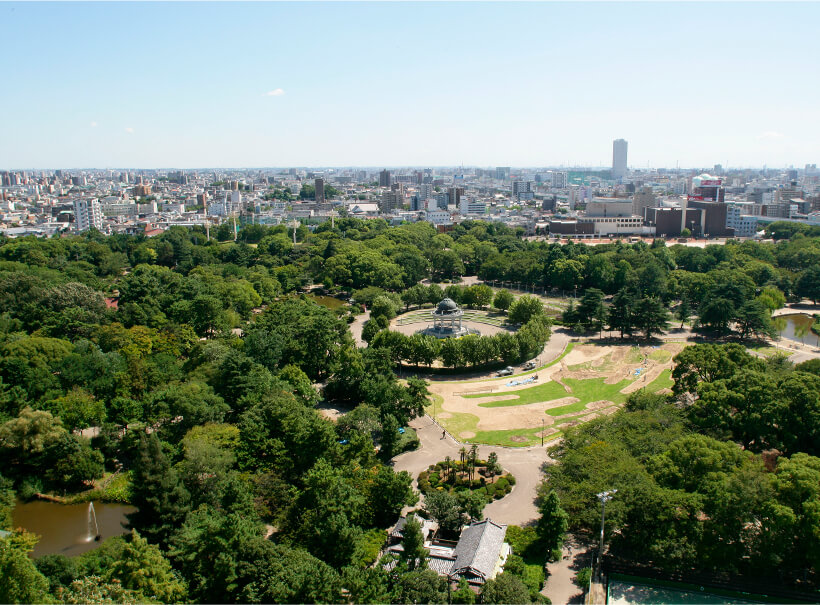 名大病院の眼前に広がる、1909年開園の公園。春には約1200本もの桜のもとに多くの人々が集う、お花見の名所でもあります。