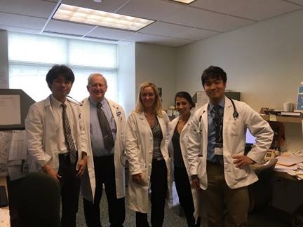 後半の2週間は、MLTの造血幹細胞移植の患者のフォローをしていました。Johns Hopkins大学ではHLA Haploidentical BMTと世界でも珍しい方法で、造血幹細胞移植をしていて、その第一人者の先生方が集結していました。それにより日本での血液内科でのイメージを覆される体験や話を多く学ぶことができ、具体的には外来で造血幹細胞移植をし、合併症があった場合に入院をし、病棟内でも子供、家族、ペット、花など持ち込みが可能で、普通の患者と同じような生活をしているのに本当に驚かされました。今ではガイドラインにより決まっており、国や場所によって治療法が変わることはあまりないと思っていましたが、造血幹細胞移植に関しては異なっており貴重な経験ができました。
