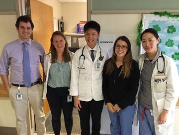 Dukeでは小児血液腫瘍内科で実習を行いました。小児腫瘍は名大のポリクリでも経験させて頂きましたが、日本とアメリカの違いを大きく感じました。まず第1に、患者さんの入院期間が非常に短いことです。日本で白血病の治療をするとなると、生活を捧げて親子で何ヶ月にも渡る入院生活を行わなくてはならず、母子ともに過酷な現実が待ち構えています。しかしアメリカでは、たとえ抗がん剤治療中でも、入院が必要な治療(腎障害を避けるための48時間持続輸液など)の際のみ入院するため、数日で退院し、2週間後にまた数日入院をしに来るという治療の流れでした。第2にノースカロライナではAfrican-Americanが多いため、患者さんの3分の1はSickle cell crisisで入院していました。これは鎌状赤血球症の患者さんに生じる急性の疼痛で、鎌状赤血球がその形ゆえに細い血管に詰まってしまい、痛みを生じさせているそうです。幼稚園以上の年齢になると「どれくらい痛いか」を本人に尋ねて、そのスケールによって退院を決めることも多いので、中には、学校に行きたくなかったり、親の関心を引きつけておきたいといった理由から、ずっと8や10と答える患者さんもいました。Attendingと「親の教育から始めないとね」と話し合ったことが印象的でした。