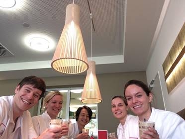 まずはじめに、4/4から一般外科を4週間rotationさせていただいた。内容としては、朝集合してから軽い回診を行って、次にカンファレンスを行い当日のop予定の話や前日のERでの症例のコンサルトなどを行っていた。患者さんと話すときやカンファレンスなどはすべてドイツ語で、この時間はなかなか内容を把握するのに苦労してわからない内容などは先生に尋ねた。そのあと教授回診が行われ、手術に行く人・ERに行く人に分かれた。手術では主に鼠径ヘルニアやGERDや胆嚢炎、大腸癌などビールを飲み肉を食べ恰幅のいい人の多いこの国では納得のいくような症例ばかりや甲状腺腫瘍などであった。ここでは助手として清潔野に入らせていただいた。ERに行くと大抵一人の先生について術後の人の管理を行う外科の外来のようなものや、虫垂炎や精神科的な疾患の人、骨折などあらゆる患者を一緒に診させていただいた。私はエコーが練習したい・見たいと言ったら、実際に患者相手にやらせていただいたり見学をしたりできた。やはり市中病院だからかかなりやらせてもらえるなと思った。こちらの外科の先生方はとてもよくしていただきドイツ語というバリアもありながら、ディナーに呼んでいただいたり(もちろんビアレストラン)、とても楽しく有意義に過ごすことができた。