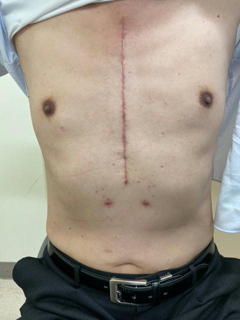 胸骨正中切開は、胸骨を切ってのアプローチとなるため、一般的には術後2カ月間は重いものを持つなどの胸骨に負担のかかる労作を控える必要があります。