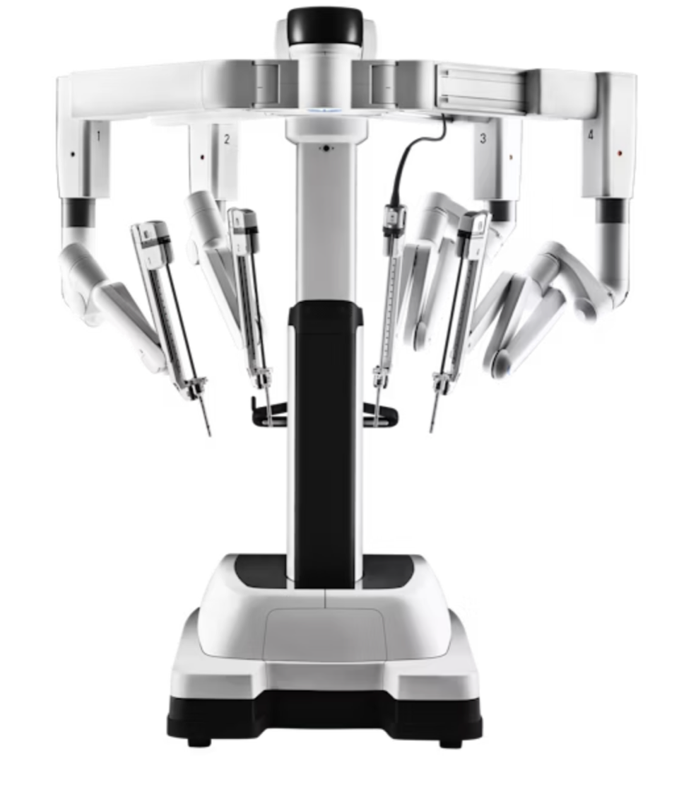 Da Vinciはコンソールで操作したことをロボットアームがリアルタイムに実行するという遠隔操作システムになっています。合計4本のロボットアームがあり、カメラ1本、鉗子3本の構成になっています。カメラには3D内視鏡が取り付けられ、その視野は非常に鮮明であり、3本の鉗子をたくみに操ることで、つまむ、切る、かき出す、縫合するなど、多彩な用途に応じて付け替えられます。