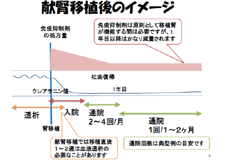 | 移植腎機能 | 一回の腎移植のみで生涯腎機能が保たれる保障はありません。 |
